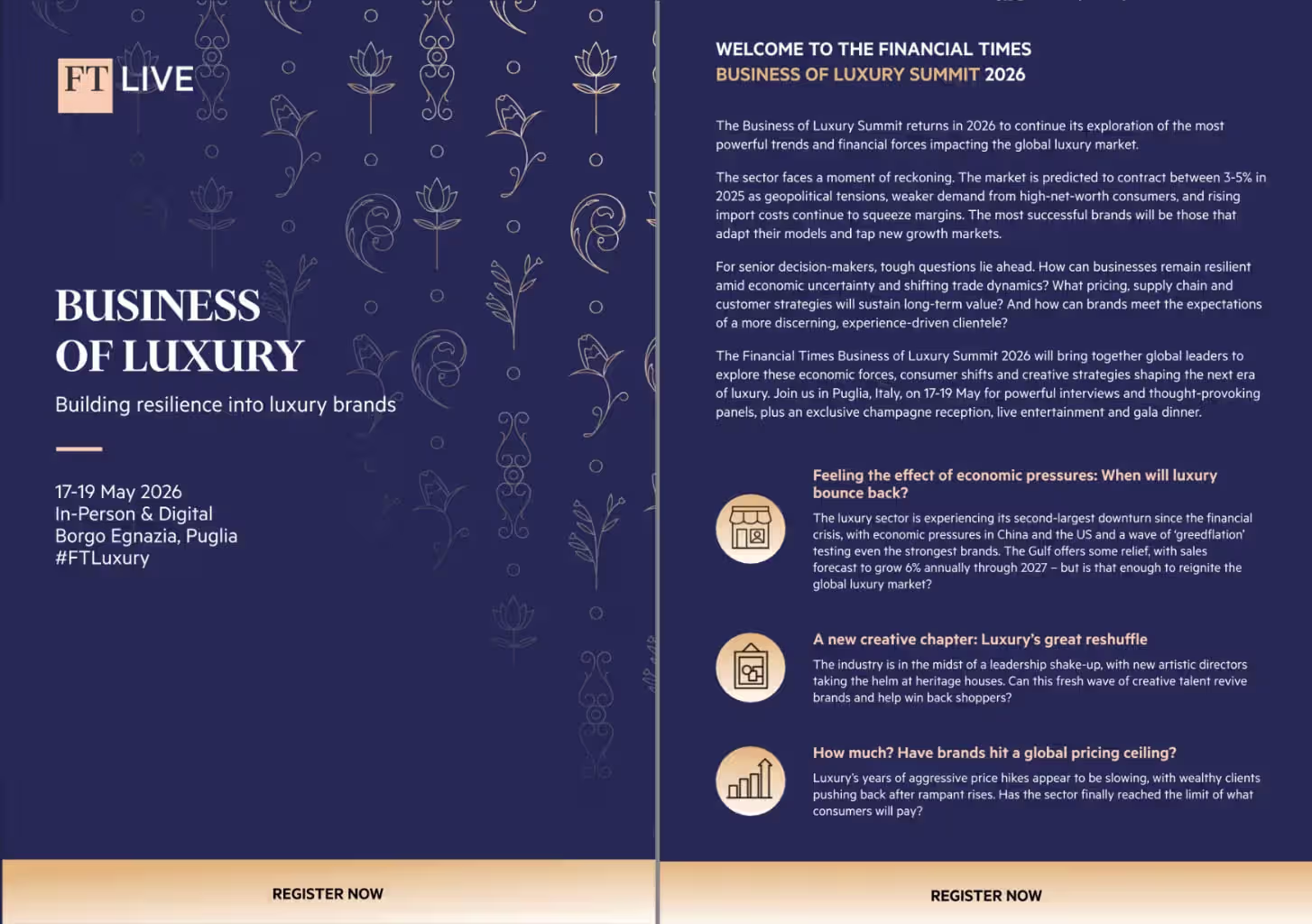 This FT Live report explores key insights into the evolving luxury landscape. As the market faces headwinds, brands are refining their strategies—shifting towards ultra-high-net-worth consumers, embracing hyper-personalisation, and elevating experiential offerings.
